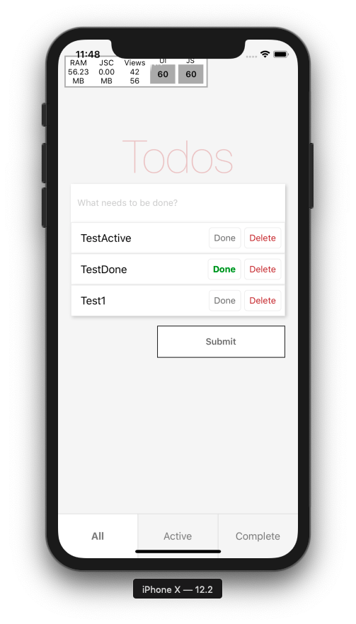 화면 하단에 TabBar가 생성되었고 Active, Complete에 따라 Todo 목록이 필터링 됨